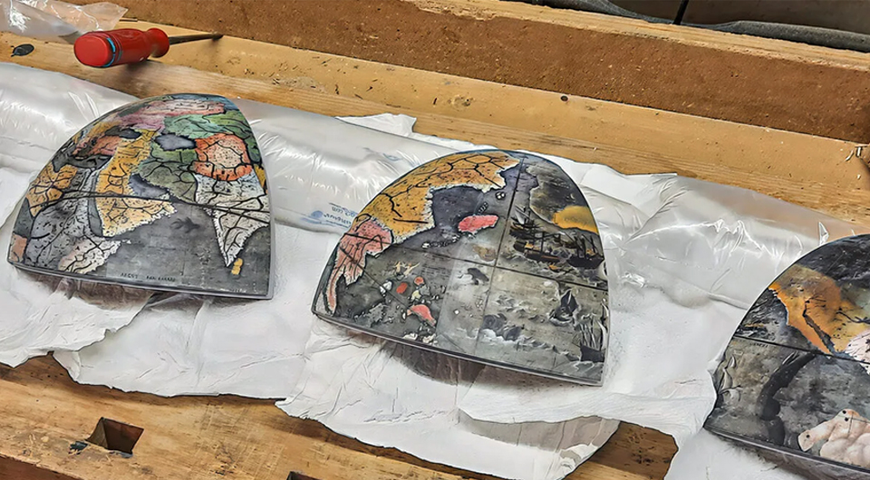 Von der digitalen Modellierung bis zur finalen Montage vereint dieses Projekt modernste Technologie mit höchster Präzision im Umgang mit historischen Originalen. Die Globuskugel wurde im PolyJet 3D-Druckverfahren aus 16 Einzelteilen gefertigt, geschliffen und lackiert, um dem Original so nah wie möglich zu kommen. Das Replikat ist vollständig funktionsfähig.