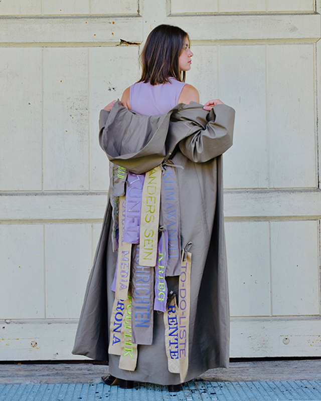 Die Kollektion von Linnea Scherbaum ist inspiriert von der Transformation des alltäglichen Überflusses zur Klarheit. Sie reflektiert die Notwendigkeit, in einer Welt voller Informationen Ordnung zu schaffen und verkörpert die Entschlossenheit, Schichten allmählich abzulegen.